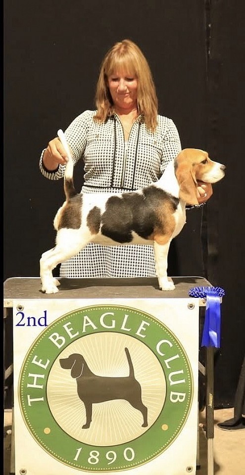 Nevaeh is our latest puppy to come out in the show ring. She's the daughter of Martha and Kyle, she's a cheeky fun girl always instigating play especially with Sonny. She's had a good start to her showing with a reserve Best Puppy In Show at the Welsh Beagle Club show only beaten by her cousin Sonny! She is now qualified for Crufts next year.